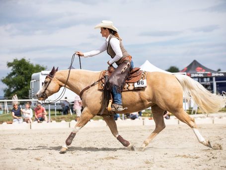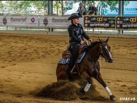 Rosie ist 2014 geboren und seit 2016 in unserem Besitz. Sie wurde 4-jährig das erste Mal in Jungpferdeprüfungen vorgestellt und da ließ sich auf dem ersten Turnier mit einer Wertnote 8,5 im Jungpferdetrail schon erahnen, welche Talente in ihr schlummern. Das sollte nicht die einzige Wertnote über 8 gewesen sein, als 5-jährige Stute holte sie den Titel "bestes Jungpferd Baden Württembergs". Auch in Junior und Senior Klassen Reining, Ranchriding und Trail war sie sehr erfolgreich.