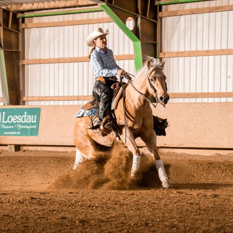 Lilly ist 2018 geboren und seit 2020 bei uns. Sie wurde 2021 angeritten und 2022 das erste Mal vorgestellt. Sie hat eine erstaunliche Karriere hingelegt, ist bereits mehrfacher Landesmeister und hat Siege in Reining, Ranchriding, Ranch Rail, und Jungpferdeprüfungen. Sie ist ein ganz besonderes Pferd und wickelt wriklich jeden um ihre Hufe...